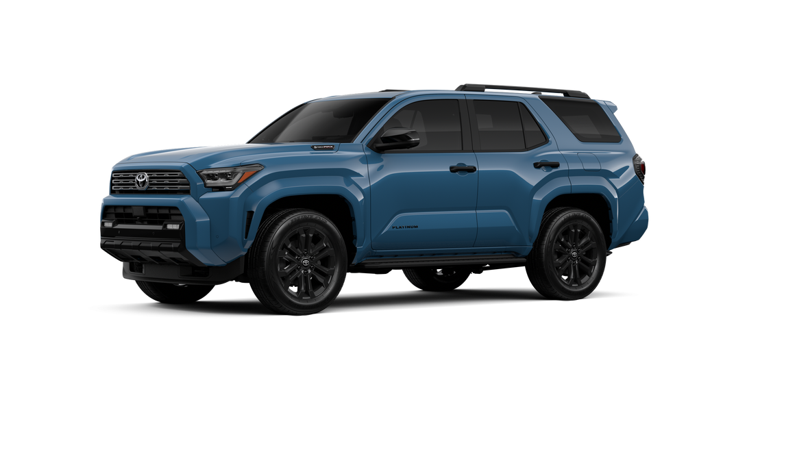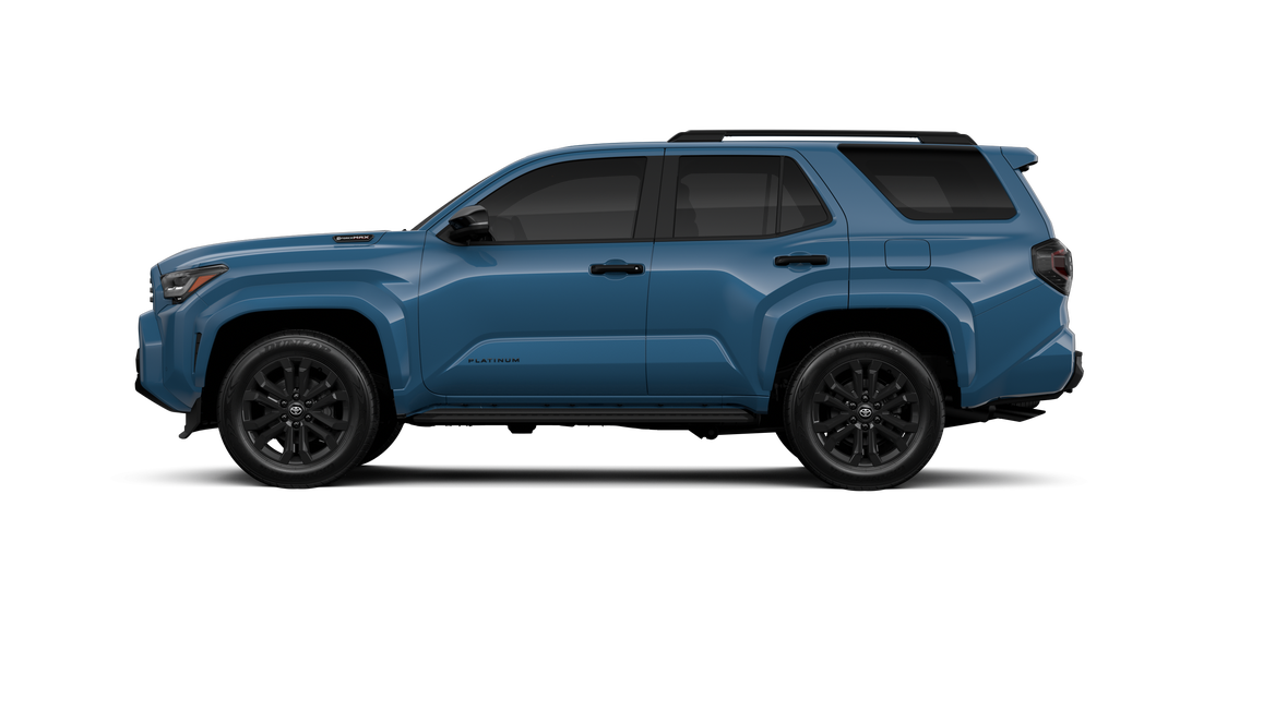 • Dark-chrome tri-bar grille; gloss-black mirror caps and door handles; color-keyed overfenders and rear spoiler; gloss-black "PLATINUM" and "4RUNNER" badges
