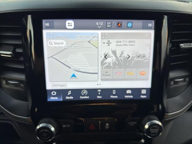 Convenience Group: Rear View Auto Dim Mirror; Air Conditioning ATC with Dual Zone Control. Quick Order Package 21A Tradesman. Bed Utility Group: MOPAR Spray in Bedliner; MOPAR Deployable Bed Step; LED Bed Lighting. Tradesman Level 1 Equipment Group: Exterior Mirrors with Heating Element; Power Heat Fold Telescopic Mirrors; Mirror Running Lights; Exterior Mirrors with Supplemental Signals; Manuarl Telescoping Mirrors; Power Adjust Mirrors; Black Exterior Mirrors; Exterior Mirrors Courtesy Lamps; Manual Folding Exterior Mirrors; Power-Adjustable Convex Aux Mirrors. Auto Level Rear Air Suspension. Uconnect 5 Navigation Radio with 8.4" Display. MOPAR Spray in Bedliner. Trailer Brake Control. 50 Gallon Fuel Tank. Rear Window Defroster. MOPAR Front and Rear Rubber Floor Mats. **Equipment listed is based on original vehicle build and subject to change. Please confirm the accuracy of the included equipment by calling the dealer prior to purchase.**