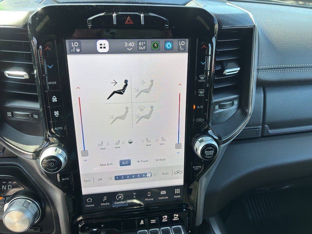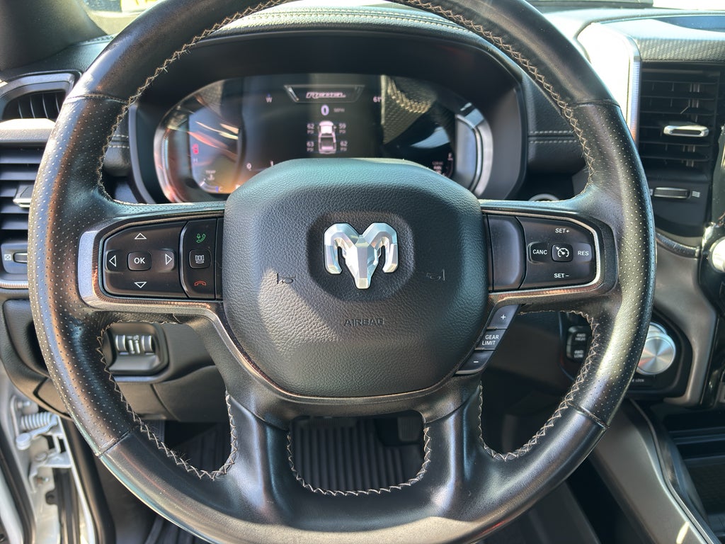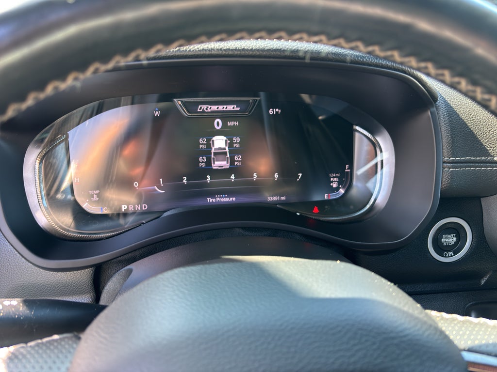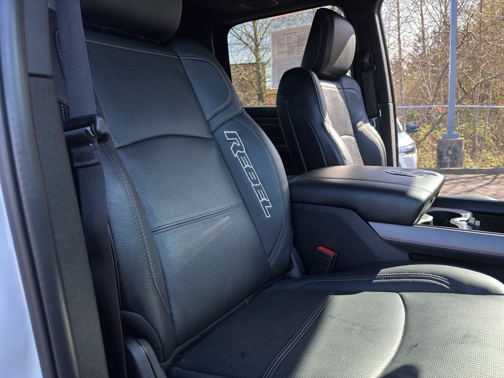 Bed Utility Group: MOPAR Spray in Bedliner; MOPAR Deployable Bed Step; LED Bed Lighting. Level 1 Equipment Group: Google Android Auto; SiriusXM Radio Service; Power Adjustable Pedals with Memory; For Details. Visit DriveUconnect.com; For More Info. Call 800-643-2112; Integrated Voice Command with Bluetooth®; 12" Touchscreen Display; Auto Power-Folding Mirrors; Mirror Running Lights; Alexa Built-In; Apple CarPlay; Power Adjustable Convex Aux Mirrors; Premium Overhead Console; Forward and Reverse Utility Lights; 9 Alpine Speakers with Subwoofer; Disassociated Touchscreen Display; LED Interior Lighting; LED Dome Lamp with On/off Switch; Sun Visors with Illuminated Vanity Mirrors; Rear Window Defroster; Rain Sensitive Windshield Wipers; Rear Power Sliding Window; Connectivity - US/Canada; Body Color Door Handles; GPS Navigation; 4G LTE Wi-Fi Hot Spot; GPS Antenna Input; Overhead LED Lamps; Exterior Mirrors with Heating Element; Auto Dim Exterior Mirror; SiriusXM with 360L; Global Telematics Box Module; Connected Travel and Traffic Services; Black Exterior Mirrors; Off-Road Information Pages; Selectable Tire Fill Alert; Trailer Tow Pages; HD Radio; Uconnect 5 Navigation with 12.0" Display Radio; Power Heated Fold Telescopic Mirrors with Memory; Exterior Mirrors with Supplemental Signals; Exterior Mirrors Courtesy Lamps; Remote Proximity Keyless Entry; Auto High Beam Headlamp Control; Exterior Mirrors with Memory; Power Adjust Mirrors; Front Door Accent Lighting; Power Telescoping Mirrors; Leather-Faced Bucket Seats; Auto Dim Exterior Passenger Mirror; Rear Door Accent Lighting; Auto Adjust in Reverse Exterior Mirrors. Quick Order Package 2GR Rebel: Rebel Suspension; Instrument Cluster Theme 2 - Rebel; Michelin Brand Tires; Conventional Differential Front Axle; 4x4 Badge; 220 Amp Alternator; Black Wheel Center Hub; Electric Shift-On-the-fly Transfer Case; Rebel Instrument Panel Badge; Painted Semi-Texture Film Instrument Panel Bezels; Limited Slip Rear Differential with Electronic Lock; Rebel Badge; 18" Steel Spare Wheel. Power Sunroof. MOPAR Spray in Bedliner. 9 Alpine Speakers with Subwoofer. Blind Spot and Cross Path Detection. Security Alarm. **Equipment listed is based on original vehicle build and subject to change. Please confirm the accuracy of the included equipment by calling the dealer prior to purchase.**