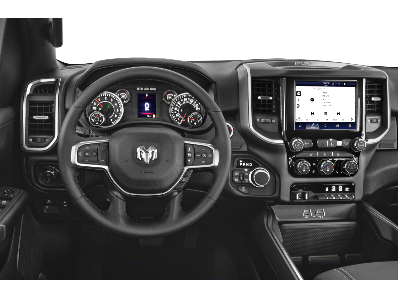 Our dealership has already run the CARFAX report and it is clean. A clean CARFAX is a great asset for resale value in the future. Bluetooth® technology is built into the vehicle, keeping your hands on the steering wheel and your focus on the road. This 1/2 ton pickup's Forward Collision Warning system alerts the driver to potential front-end collisions, enhancing safety. Keep your hands warm all winter with a heated steering wheel in this Ram 1500 . This Ram 1500 has auto-adjust speed for safe following. Protect the Ram 1500 from unwanted accidents with a cutting edge backup camera system. The Ram 1500 offers Apple CarPlay for seamless connectivity. This 1/2 ton pickup comes equipped with Android Auto for seamless smartphone integration on the road. The rear parking assist technology on this model will put you at ease when reversing. The system alerts you as you get closer to an obstruction.